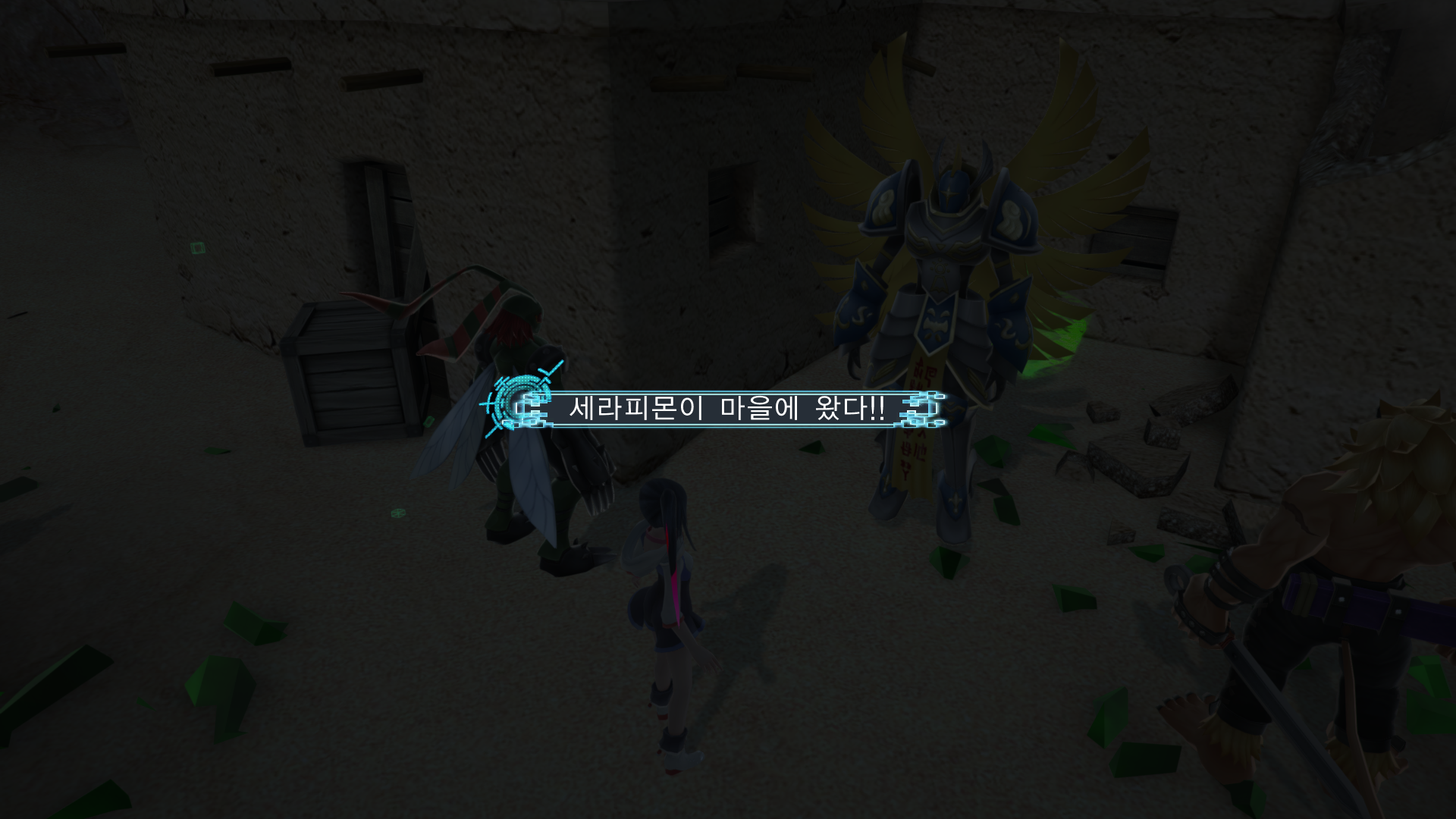 다시 원뿔몬에게 가서 말을 걸면 원뿔몬도 세라피몬을 쫓아 마을로 오게 됩니다.
